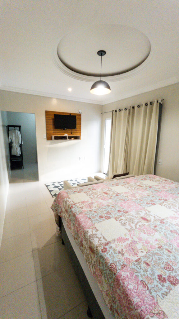 TV à cabo, Wi-Fi, Frigobar, Ar-Condicionado, Cama Queen Size, Chuveiro Quente, Rede, Café da Manhã Incluso.