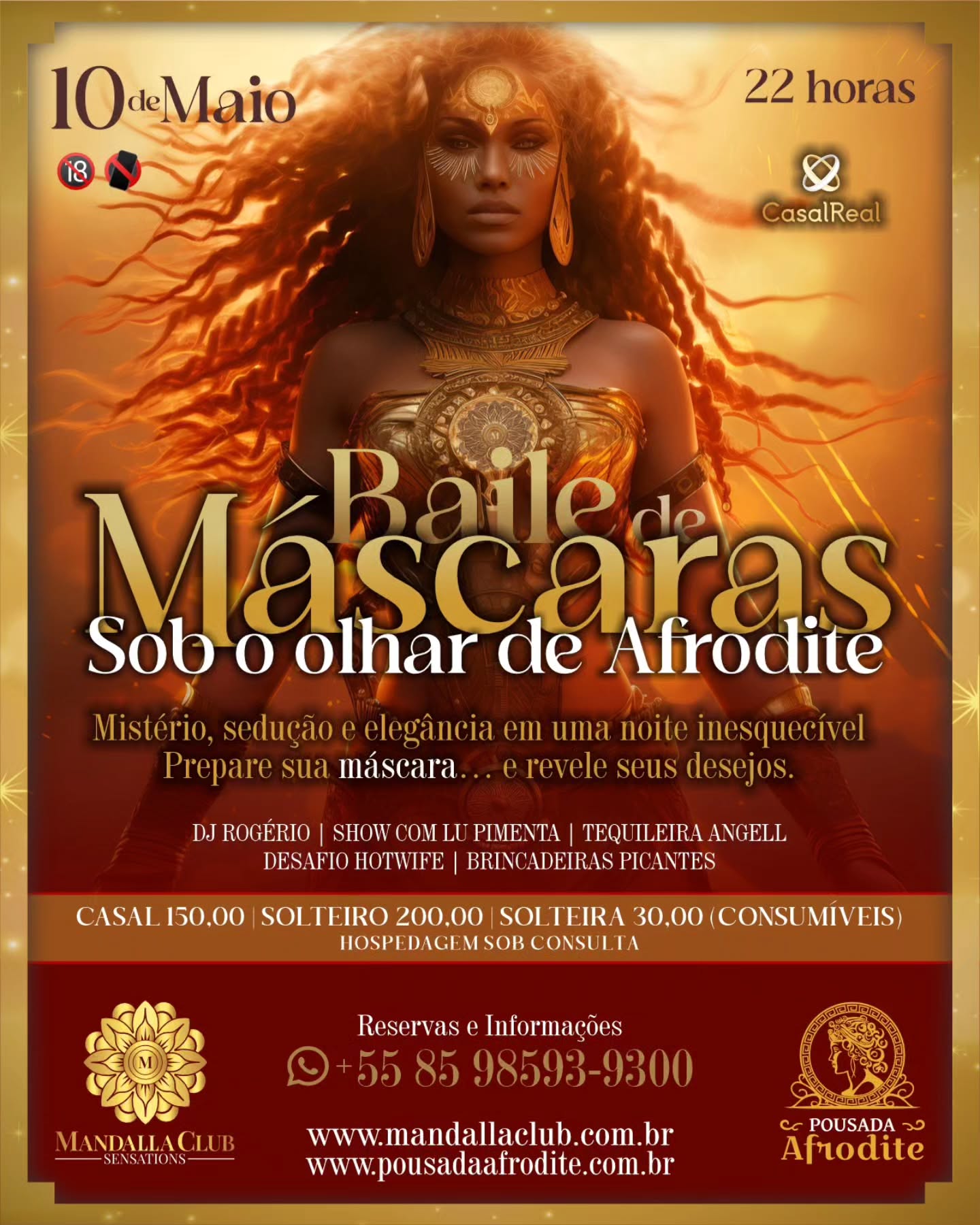 Prepare-se para uma noite onde o glamour encontra o desejo, o anonimato das máscaras libera os segredos mais profundos… e a deusa do amor reina absoluta.